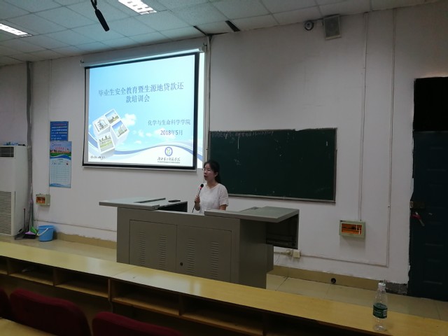 为进一步加强大学生对国家资助政策的了解,使资助工作更好的落实,2019年5月23日下午15:00,化学与生命科学学院在老图书馆一号报告厅举行了生源地贷款贷后管理培训会。共有51名来自各班的资助专员和资助宣传员参加了培训会。