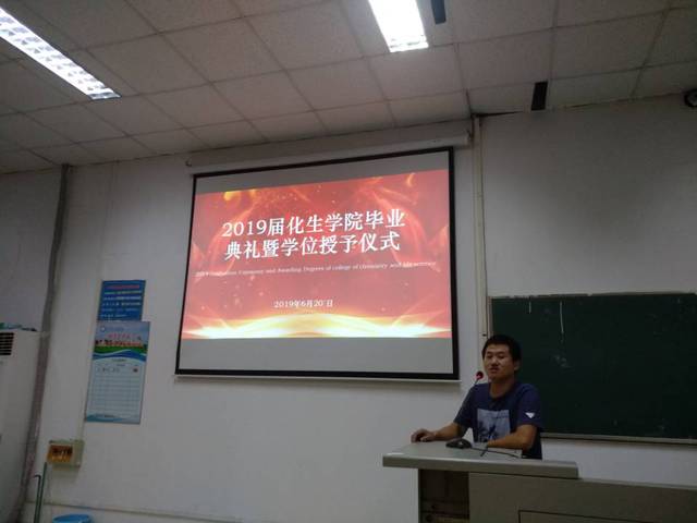 6月20日晚上,化学与生命科学学院(以下简称化生学院)于一号报告厅举办了2019届毕业典礼暨学位授予仪式。化生学院党总支书记严莉萍、院长曾国平、副书记李立、副院长肖长清,以及毕业班辅导员袁华、高丽娥、19届毕业生代表及部分同学家长参加了本次典礼,李立主持。