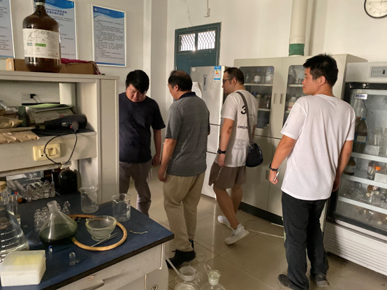 为保障新学期实验教学和科研工作有一个良好开端,2019年9月23日上午,化生学院领导带领实验室管理办公室对本学院教学、科研实验室进行了安全检查。重点检查了各实验室环境卫生、水电管理、化学和生物试剂存放、废液储存、特殊设备保管和使用情况等。