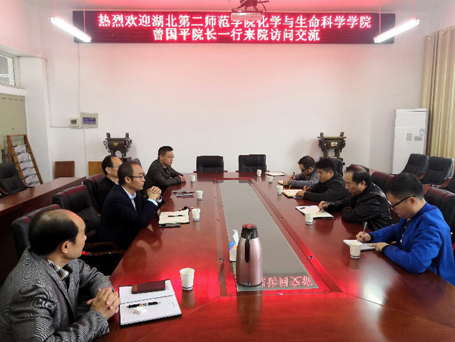 为了更好地开展我院硕士点申请、学科专业认证及实验室管理等工作,借鉴兄弟院校的先进经验和工作方法,11月13日上午,化生学院院长曾国平教授率学院副院长肖长清副教授、院长助理周诗毅副教授等一行五人前往长江大学进行调研,与长江大学化学与环境工程学院院长颜学敏教授、党委书记刘桂生、应用化学系系主任李水清教授、化工系系主任石东坡教授进行了深入交流。