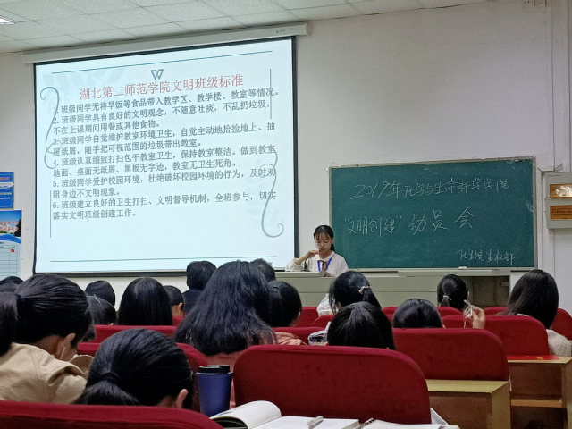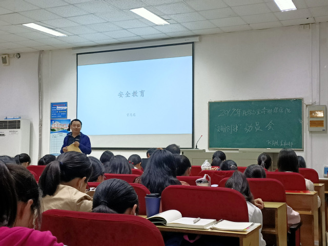 会议开始,由李书记和高老师为优秀寝室和优秀寝室长颁奖,激励优秀寝室再接再厉,鼓励未获奖的寝室以他们为榜样努力进取。大会第二项,由生权部干事叶雨晴讲解教室监管制度。要求同学们要注意教室卫生,应做到桌面地面干净整洁,无残余垃圾。大会第三项,杜新宇介绍并安排五个“一”文明创建活动。大会第四项,由宦忠虎老师进行安全教育。他强调同学们注意自身的生命与财产安全,宿舍特别要注意消防安全,不违规使用大功率电器,同时要注意防盗、防骗,同时提到同学们要有良好的生活习惯和健康的生活方式,各班应做好课堂和晚考勤工作,并如实上报。最后,由李立书记发表讲话。他提到:应加强对大一新生的素质教育。当今时代网络发达,同学们应把握好这个学习机会,提高自身修养。要重视寝室建设,做到有洁,有情,有文化。同时也强调:寝室文化的建设的基础是安全建设。