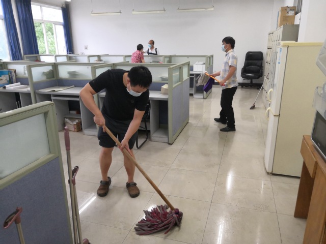 6月18日上午,化生学院全体党员参加了“深入学习两会精神,统筹做好毕业生就业、返校高校工作”的主题党日活动。会后,党员带领全体教职员工对学院办公区域以及实验室进行了打扫和清理。