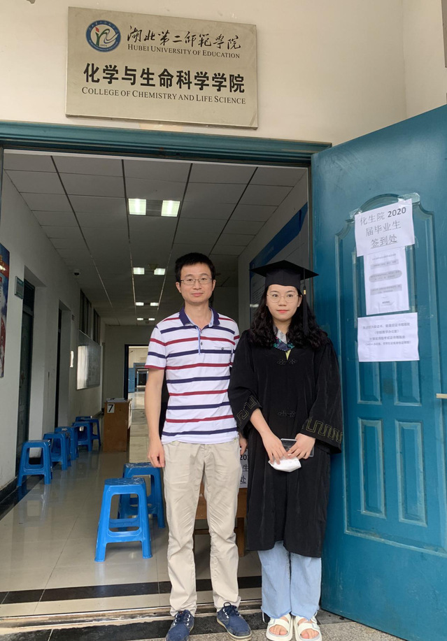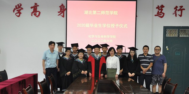 从21日起,每天下午三点,院长曾国平准时在学院会议室穿着红色的导师服等待参加学院毕业生学位授予仪式的同学到来,为了弥补不能举行毕业典礼的遗憾,学院每天下午三点为返校同学准备一场简朴的毕业学位授予仪式。参与仪式的有化学与生命科学学院全体领导班子成员,由化学与生命科学学院院长曾国平为学生行拨穗礼并为其颁发学士学位证书,仪式全过程通过钉钉直播分享给毕业生们。仪式最后,所有与会的教师和同学们在毕业留言墙签名、合影留念。