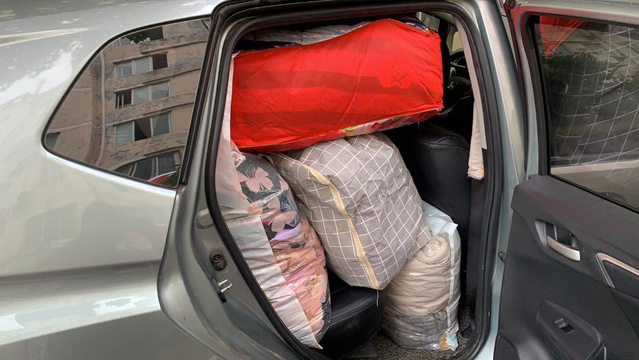 (周诗毅副院长的车子塞满了学生行李)