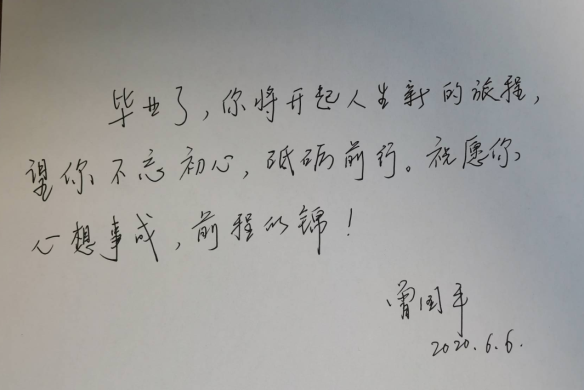 特殊时期,同学们在校园里也无法长时间相聚和交流,为了弥补这一遗憾,学工办办特别设计了毕业留言簿,请返校的我同学一一留下自己想对母校说的话,用另一种方式来和母校进行交流。借此表达对母校几年来辛勤培育的感激之情。