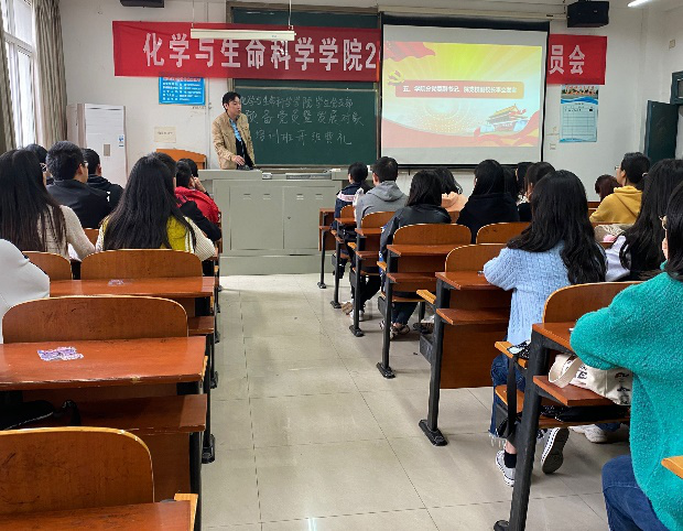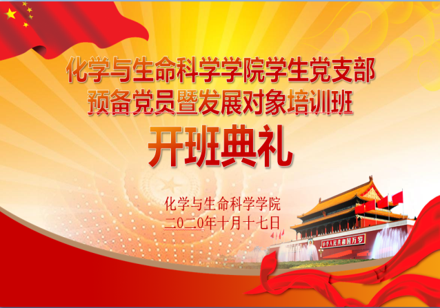 2020年10月17日,化学与生命科学学院学生党支部预备党员暨发展对象培训班开班典礼在S6202召开。化学与生命科学学院分党委书记、院党校校长严莉萍,分党委副书记、院党校副校长李立,学工办主任宦忠虎,学生党支部书记高丽娥和22名预备党员、41名发展对象参加了此次开班典礼。