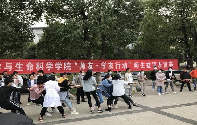 会后,招生就业处、资产管理处领导老师、化生学院班子成员、全体辅导员、2020级新生班导师与2020级新生一同前往行知广场进行拔河友谊赛。