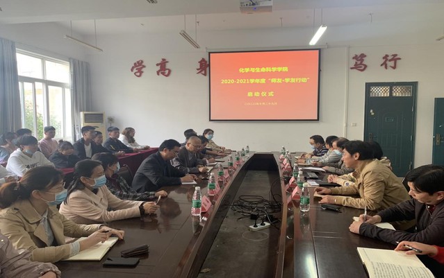 本网讯(通讯员 朱雨璐)2020年10月29日中午,化学与生命科学学院在化生学院会议室召开了“师友•学友行动”启动仪式。副校长黄颂参加会议,化学与生命科学学院党委副书记李立主持。
