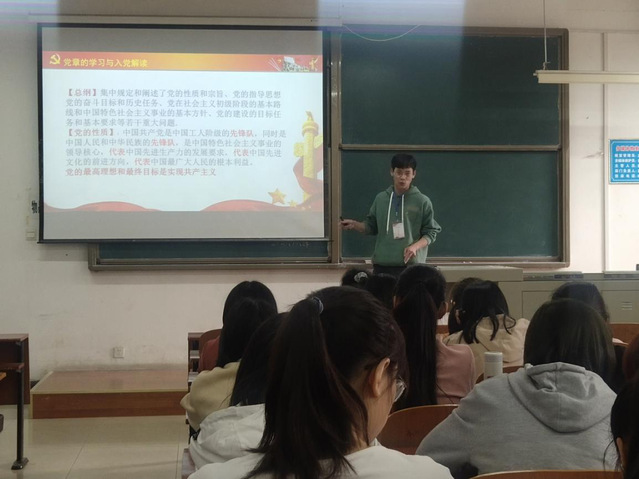 本次宣讲内容主要包括党章知识学习以及入党程序和标准要求解读,活动范围覆盖我院2019级及2020级共12个班级。活动前期,宣讲小组认真准备课件,反复试讲完善内容,宣讲过程中小组成员以入党初心为切入点,引导同学们端正入党动机,让同学们深刻领悟到学习党章的重要性,清楚了解入党标准和入党程序。