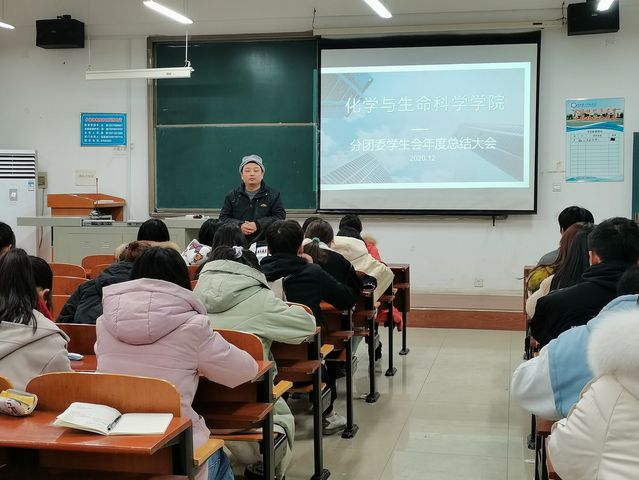 本网讯(通讯员房雪飞)2020年12月19日化学与生命科学学院(以下简称化生院)分团委学生会总结大会在S6202举行。出席本次会议的有化生院分团委书记宦忠虎,分团委副书记高丽娥以及辅导员孙晨老师、邱梦莹老师和全体团学干部。