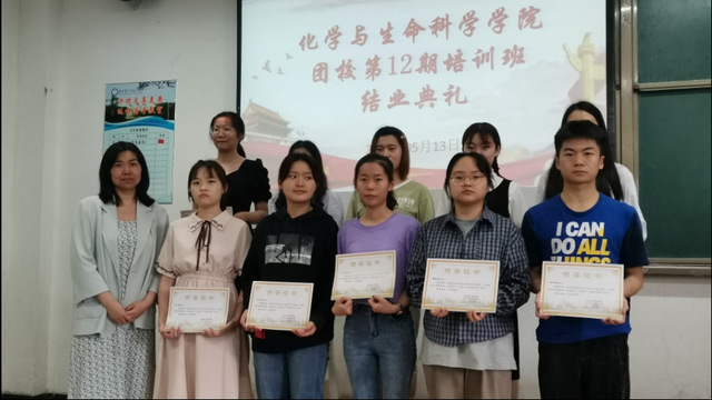 本网讯(通讯员 郑先娅)2021年5月13日下午14时,学校化学与生命科学学院(以下简称“化生学院”) 团校第12期培训班结业典礼在S6201教室圆满落幕。化生学院党委副书记雷晓林、分团委书记宦忠虎出席了本次活动,为优秀学员颁奖。