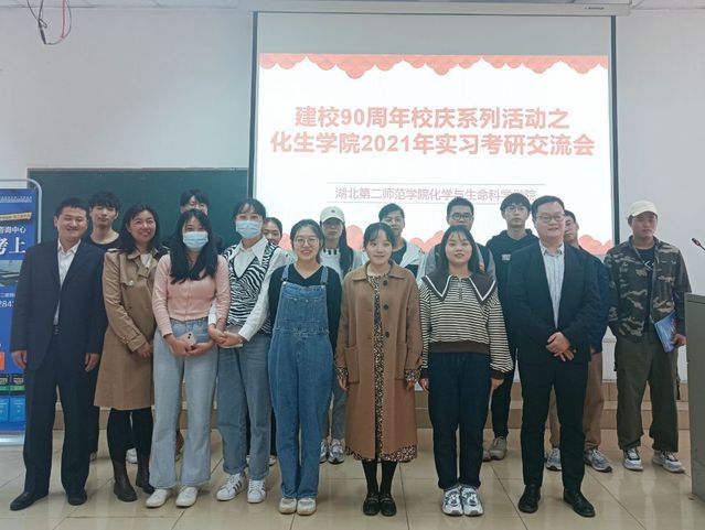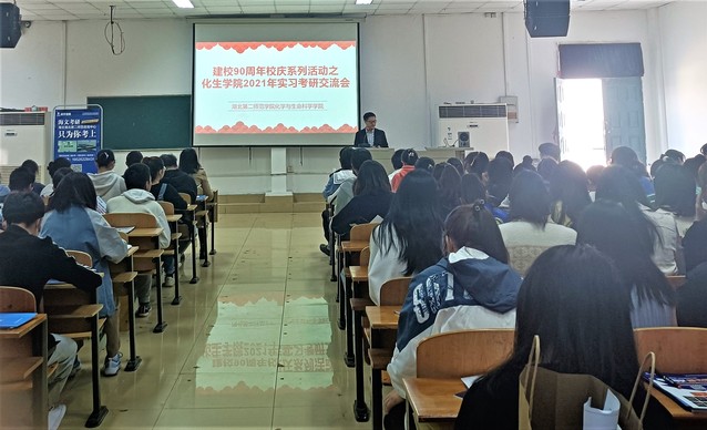 本网讯(通讯员 贾佩瑶)校庆日当天,化生学院邀请优秀校友为学弟学妹分享实习考研心得体会,帮助大三学弟学妹规划学习生活。10月31日9时,在院长助理张宇副教授的主持下,建校九十周年系列活动之化生学院2021年实习考研交流会于学校三号报告厅顺利召开。化学与生命科学学院(以下简称“本院”)分党委副书记雷晓林、副院长肖长清、院长助理张宇、学生党支部书记高丽娥出席,部分返校校友、全体大三学生与会。