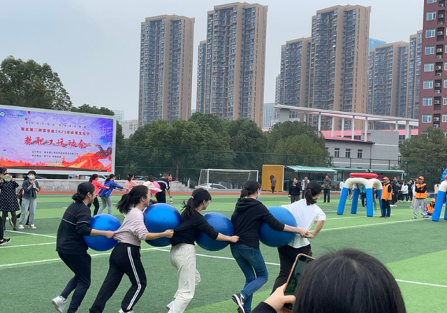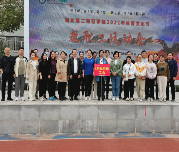 本网讯(通讯员 姚云骢) 为铭记百年党史,传承体育精神,增强教职工体魄,丰富师生课外活动,2021年11月4日下午,湖北第二师范学院2021教职工趣味运动会于棒垒球场顺利举行。化学与生命科学学院(以下简称“本院”)教师代表参与比赛。学院党委书记严莉萍、院长曾国平出席本次活动开幕式,并与参赛教师合影留念。