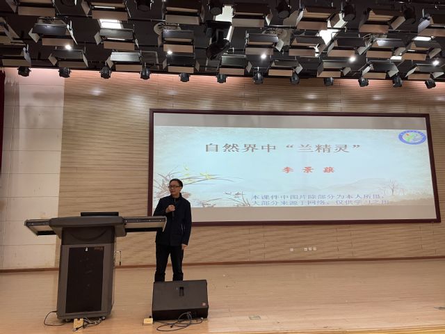 讲座伊始,李景蕻从孔子所作《猗兰操》一诗展开此次讲座,通过古代诗词歌画等文献,介绍兰花的性状及背后文人为其赋予的文化意义。随后,他就生物角度讲解兰花的各方面特征以及其授粉的机制,为使大家更进一步的了解到兰花相关知识,李景蕻向大家介绍了兰花的栽培技术要点及其观赏、药用等价值。最后,他指出“人工培育,工厂化生产”是国兰发展的必经之路,他呼吁大家要敢于改变中国传统兰花种植方法,研发、引进新技术,让中国兰花种植技术大步向前。