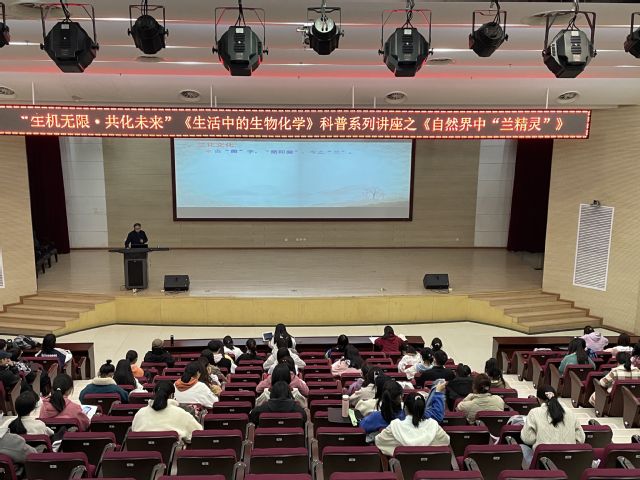 本网讯(通讯员 姚云骢 丁小莲)为展现生物魅力,传播兰花文化,让大家了解兰花相关知识,化学与生命科学学院(以下简称“化生学院”)“生机无限,共化未来”科普宣教活动之青春讲坛学术讲座于2021年11月24日18时30分在新图书馆2号报告厅成功展开。本次讲座以“自然界中的‘兰精灵’”为主题,由分团委副书记张灏主持,化生学院李景蕻教授主讲,学院部分老师、学生参与讲座。