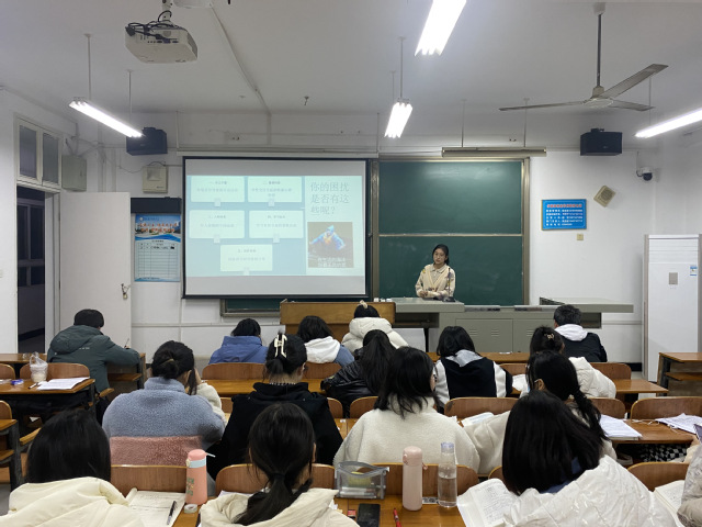 班会伊始,蒋若兰先介绍了心理健康的含义,并指出心理健康的理想状态和影响因素。随后,她从水土不服、情感纠纷、人际关系、学习压力、经济负担这五个方面,向大家分享了新生群体常见的心理困扰,还从生理因素、家庭因素和社会因素三个方面为大家剖析了产生困扰的原因。最后,蒋若兰让同学们积极提出自己的困扰,通过剖析事例、讲故事、表演等形式,引导同学们要用阳光的心态对待在学习和生活中所遇到的困难和问题,学会管理情绪,学会面对问题和解决问题,呵护自己的心灵,调整自己的心态。同时,让大家认识认识到自己的优点和不足,更好的接纳自己。要学会尊重父母、师长,同学之间相互尊重、友好相处、具有爱心、相互帮助,建立和谐的人际关系。