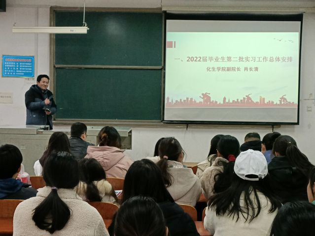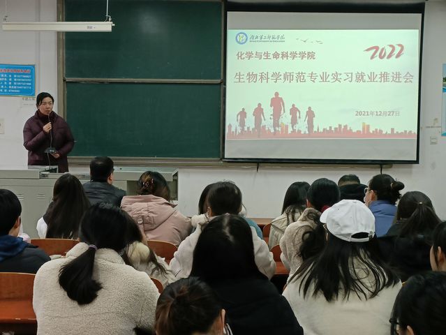 本网讯(通讯员 丁小莲 蒋怡菲)为使化学与生命科学学院(以下简称“本院”)2022届毕业生明确师范专业实习材料的填写要求,推动就业工作提早部署、提早落实,进一步做好毕业生实习就业工作安排。2021年12月27日,在本院分党委副书记雷晓林的主持下,学院各专业实习就业推进会均于s6202顺利举行。学院副院长肖长清、院长助理张宇、中国科学院武汉病毒所研究员张磊砢、专业负责人、毕业班辅导员参加会议。