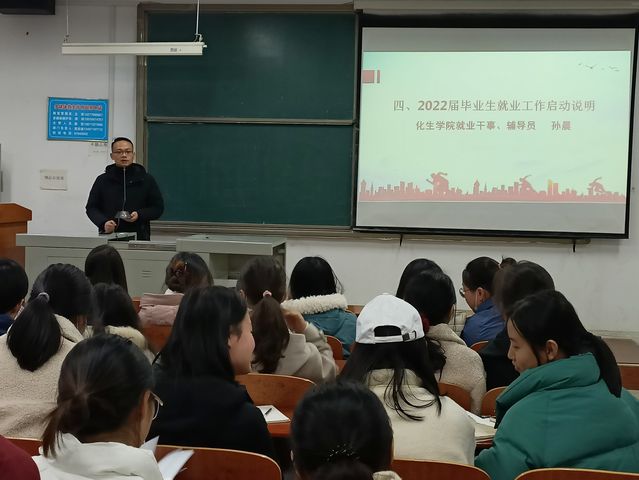 本网讯(通讯员 丁小莲 蒋怡菲)为使化学与生命科学学院(以下简称“本院”)2022届毕业生明确师范专业实习材料的填写要求,推动就业工作提早部署、提早落实,进一步做好毕业生实习就业工作安排。2021年12月27日,在本院分党委副书记雷晓林的主持下,学院各专业实习就业推进会均于s6202顺利举行。学院副院长肖长清、院长助理张宇、中国科学院武汉病毒所研究员张磊砢、专业负责人、毕业班辅导员参加会议。