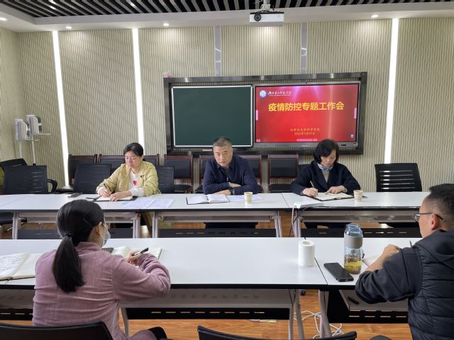 本网讯(通讯员 张灏3月29日上午,化生学院党委书记严莉萍在院多功能会议室主持召开疫情防控专题研讨会,校党委常委周忠出席并指导学院疫情防控工作,全体辅导员参加。