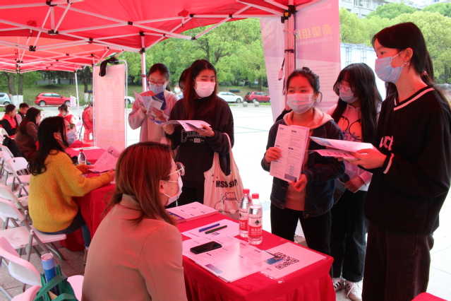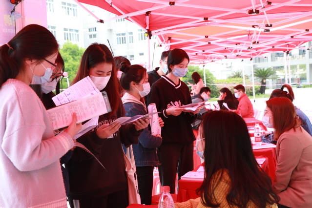 招聘会现场,用人单位通过放置招聘展板、发放招聘手册、面对面交流、讲述招聘需求等方式向同学们介绍公司概况、招聘岗位、人员需求以及公司优势。会场气氛融洽,应聘者手持自己精心准备的简历,面带微笑与自信,按照疫情防控要求通过扫码填信息进入招聘现场,寻找心仪的单位积极投递简历,向用人单位详细咨询招录事宜。