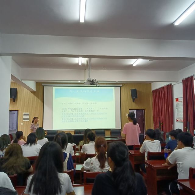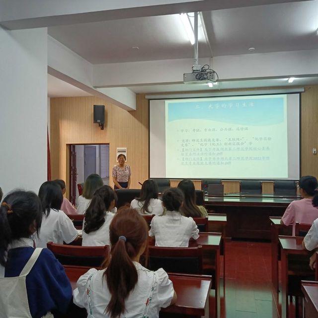 邓樱花老师首先进行了自我介绍,讲述了自己的大学生涯及工作时间线。随后,她从学习和竞赛两方面鼓舞大家除学好课本知识外,还应积极参加校内外各种活动和竞赛。重点介绍了学校“助研工程”活动,鼓励大家参加英语讲座,为四六级考试做好准备。她说:“大学不仅仅是学习,还可通过各种课外活动和竞赛锻炼并拓展自己的能力,全方面发展。”并且她还提到了贴近我们身边的校园操场摆摊卖货故事。疫情当下,学生课外在操场摆摊卖货,这何尝不是锻炼自己的方法呢?讲述完学习生活后,第三方面是就业方向。邓樱花首先介绍到大家毕业后的三个方向:考研、中小学教师、其他岗位,并初步了解了所有同学就业意愿。她发现本班打算考研的同学占比不小,将近80%同学有考研意愿。随后,她为大家分享了所带2011级化学班的考研发展情况,并提出了几点建议,比如同学们可以结伴去图书馆学习并相互鼓励,相互约束。其中她重点提到了关于考研择校问题,提醒我们不要扎堆报考同一院校中同一专业,避免班内竞争现象。