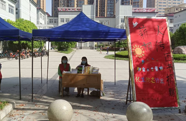 4月9日上午9点,2022届毕业生“薪火相传”图书捐赠活动在行知广场正式开始,一直持续到下午5点结束。早在活动开始前两天,化生院志协官Q就积极地进行了宣传,同时完成了活动志愿者的招募。活动中采取两种捐赠方式:第一种是毕业生将书籍送至化生院门口,第二种是书籍过多的由志协工作人员去宿舍搬运至化生院门口。每位捐书者都会进行登记,并在书的扉页留下“2018级xx专业xxx”所捐字样。下午五点,活动圆满完成,活动当天共计收到捐赠图书261本。活动结束后我院志愿者对图书整理分类、妥善处置,对后期领书工作提前做出准备。