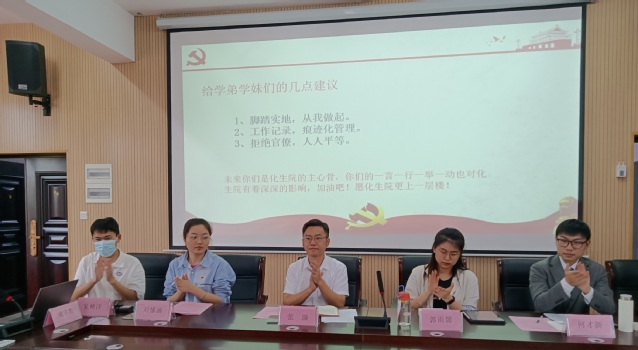 本网讯(通讯员刘诗雨)为夯实基层团学工作组织基础,加强建设具有凝聚力和战斗力的团学组织,2022年5月28日14时,化学与生命科学学院(以下简称“我院”)2021-2022学年团学组织工作总结暨换届答辩会于我院多功能会议室顺利召开。