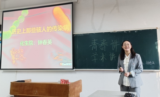 本网讯(通讯员黄姿)2022年11月3日下午,化学与生命科学学院(以下简称“我院”)第三届“生机无限,共化未来”科普宣教活动之青春讲坛学术活动第三讲于3115顺利开展。本次讲座的主题为《历史上那些骇人的传染病》,主讲人为我院钟春英副教授,副院长张宇主持此次讲座。院党委副书记雷晓林、辅导员孙晨、张灏、2022级部分学生参加此次讲座。