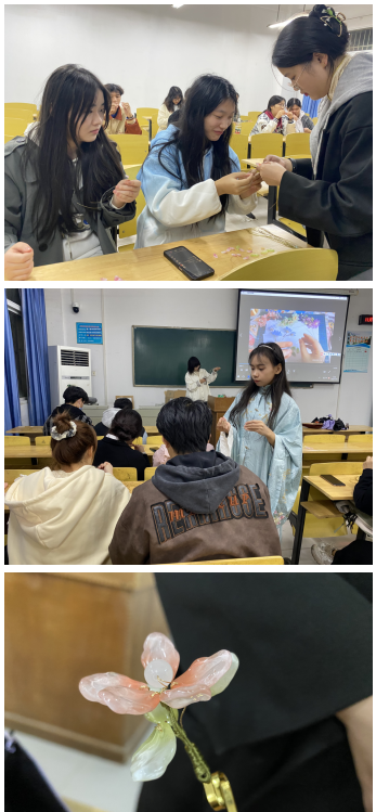 本次活动在心协组织下进行,首先在活动正式开始前,由心协成员和国学社成员合作分发了制作所需的部件。随后,由国学社王晓珺和陈航敏学姐给我们开始演示教学步骤,向同学们传授手工发簪制作的方法。其次,激励同学们发挥奇思妙想,大胆创作。