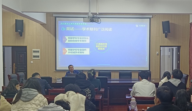 本网讯(通讯员熊英张灏)3月7日晚,化学与生命科学学院(以下简称“我院”)为助力考研学子,特邀请考研指导老师谭晓禹及22届学姐祝雪于我院会议室召开考研复试交流分享会。本次会议由院党委副书记雷晓林主持,副院长张宇、黄青,23届班级辅导员高丽娥老师以及23届部分考研同学参加此次交流会。