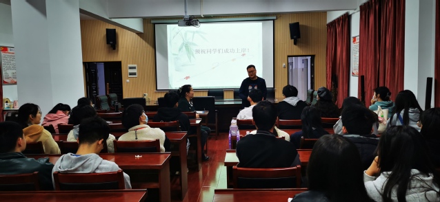 会议伊始,谭晓禹老师为大家介绍了研究生考试复试及调剂时间轴,方便同学们为复试及时做好准备,之后他从考研复试难度、高校各专业扩招情况、冷热门专业报考人数等方面带大家分析了23届考研基本情况。他强调了各分数段的同学现阶段行动方向,从英语口语听力、专业课笔试考核、面试、调剂流程几个方面为同学们辅导讲解,建议同学们尽早做好下一步规划,根据需要选择调剂信息,科学填报,争取成功上岸。