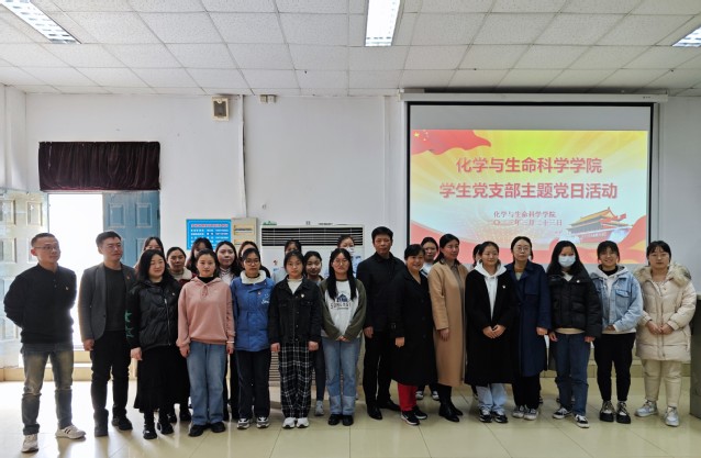 本网讯(通讯员 彭璇 高婷婷 张灏)为深入学习贯彻党的二十大、全国两会精神,认真学习领会习近平总书记系列重要讲话精神,进一步增强基层党组织的凝聚力和向心力,团结带领青年党员坚定理想信念,争做时代先锋,3月23日中午,化学与生命科学院(以下简称“我院”)学生党支部于旧图书馆4号报告厅开展了以“志存高远 脚踏实地 团结奋进新征程”为主题的党日活动。我院“师友·学友行动”联系单位图书馆党总支副书记石虹、副馆长刘晓静、副馆长倪华才、科室主管高琳等老师及学生党支部全体师生参加此次活动。