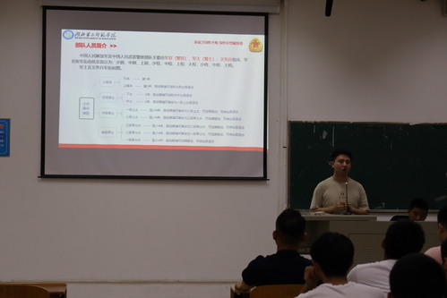 车慧龙简要分享了自己的军营故事以及成长体验,让同学们对军队生活有了初步了解。翁假维就大学生参军流程、优惠政策、经济待遇等方面进行了详细的叙述,鼓励同学们为祖国国防事业贡献自己的力量。
