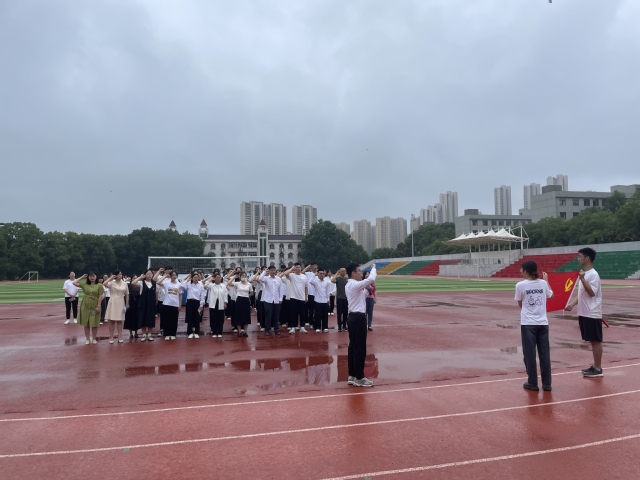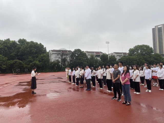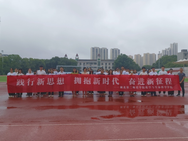 本网讯(通讯员 张雪芹 徐艺娜)为全面贯彻党的二十大精神,加强大学生爱国主义教育,化学与生命科学学院(以下简称“本院”)于6月19日上午7时在田径场开展“践行新思想,拥抱新时代,奋进新征程”升国旗主题教育活动。参加本次活动的有院党委书记严莉萍、学生党支部书记高丽娥、教师代表黄丽霞、全体辅导员、预备党员以及入党积极分子。