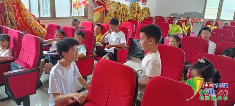 图为小朋友与志愿者雷陈举互动画面。 中国青年网通讯员 徐珍 供图