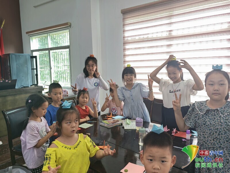 图为小朋友和老师正在展示折纸课上的成品。中国青年网通讯员 王博奥 供图