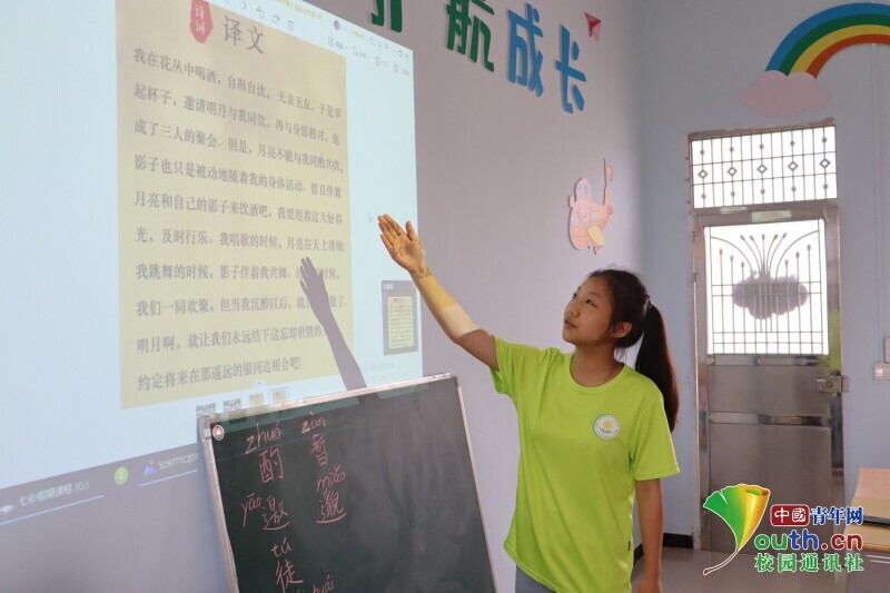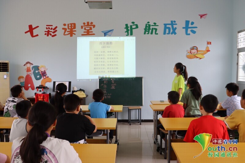 中国青年网荆州8月8日电(通讯员 蒋怡菲)为助力少年儿童健康全面成长,解决家长的后顾之忧,真切地为群众办实事、办好事。7月16日,在暑假来临之际,湖北第二师范学院青葵志愿服务队赴湖北省松滋市斯家场镇组织开展暑期公益课堂志愿服务活动,聚焦“七彩假期情暖童心 魅力科普青葵筑梦”的核心理念,打造兴趣培养、思政课堂、科普课程三大模块,包含趣味科普、党史教育、学科辅导等丰富有趣的课程主题,筑牢留守儿童假期学、玩、成长三位一体的七彩阵地。