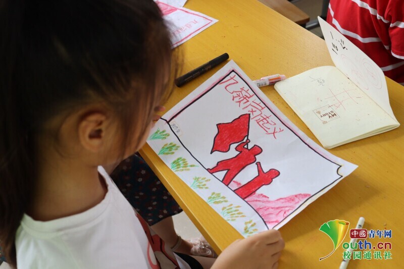图为小朋友在学习“红色九岭岗”主题党史教育课后,用画作的形式表达自己对革命先辈的敬仰。中国青年网通讯员 蒋怡菲 供图