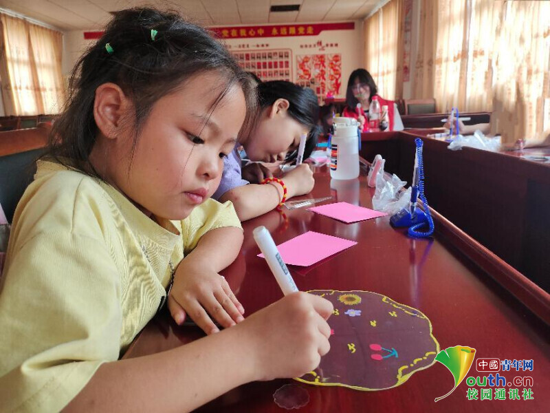 中国青年网宜都7月22日电(通讯员 朱可心)为丰富响水洞村学生动手能力,提升学生们的学习积极性,2023年7月19日,湖北第二师范学院“快乐童心支教计划梓玮志愿服务队”宜都市五眼泉镇响水洞村分队4名成员在当地“希望家园”开展趣味课程——手工绘扇,同学们跟随支教服务队队员在绘画、剪贴之中感受手工的快乐和艺术的魅力。