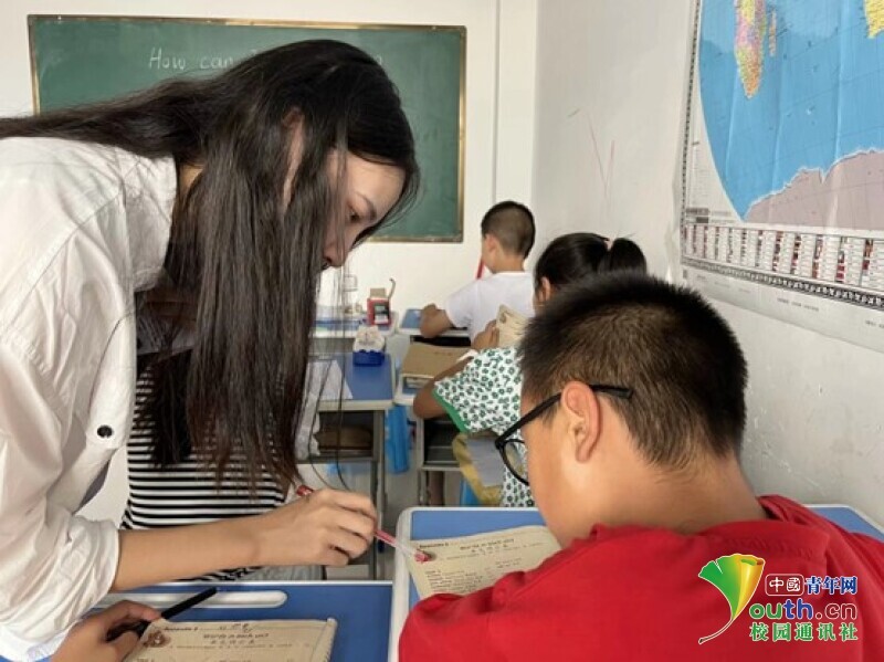 图为六年级英语老师授课,教学生英语单词。中国青年网通讯员 王诗媛 供图