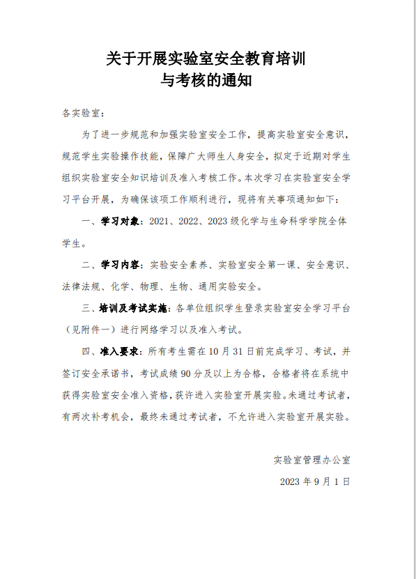 关于开展实验室安全教育培训与考核的通知(2023).pdf
