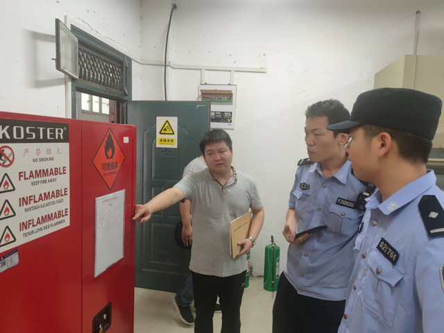 为贯彻武汉市关于开展打击治理毒品问题攻坚行动的部署要求,加大易制毒化学品监管力度,严防易制毒化学品非法流失。2023年9月6日,同心派出所民警对化生学院危险化学品,尤其是易制毒化学品开展了上门检查。