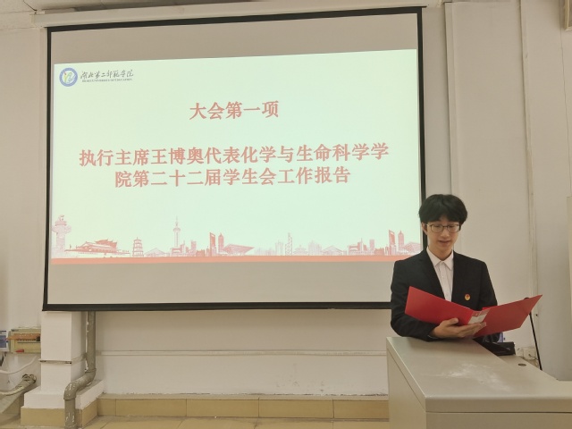 本网讯(通讯员 陈烁梦)为更好发挥学院分团委学生会为中心的纽带作用,统筹学生工作,服务同学,10月12日,化学与生命科学学院(以下简称“我院”)第五次学生代表大会于旧图书馆4号报告厅顺利举行。