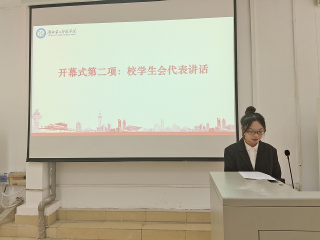 大会开始,全体起立,奏唱《中华人民共和国国歌》。随即,校学生会代表杨紫文同学上台致辞,预祝我院第五次学生代表大会顺利召开!