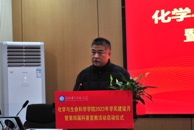 本网讯 (通讯员 彭盼 汪妍)11月30号下午,我校化学与生命科学学院(以下简称“化生学院”)2023年学风建设月暨第四届科普宣教活动启动仪式于S6201顺利举行。校党委常委、副校长陈勇,校党委常委、宣传部部长周忠出席。化生学院党委副书记雷晓林主持本次会议。