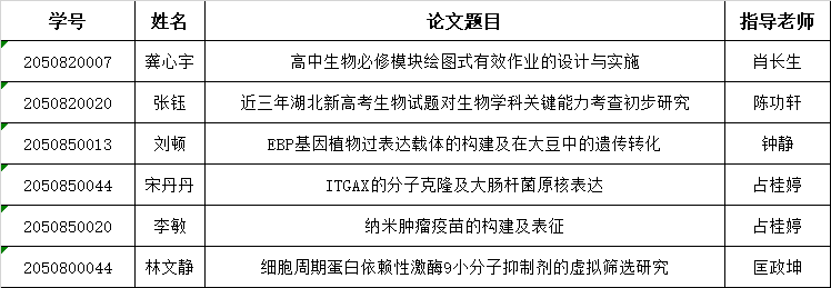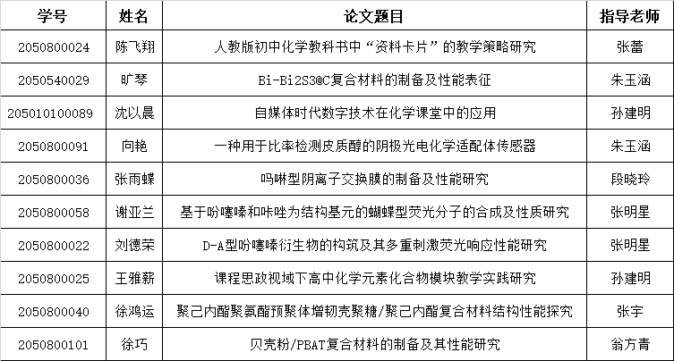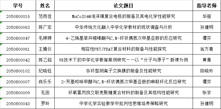根据教务处《关于做好2024届本科毕业生毕业论文(设计)工作的通知》及《本科毕业论文(设计)工作管理规定》(院教[2018]42号)的文件要求,按照《化学与生命科学学院关于做好2024届(2020级)毕业论文答辩工作的通知》的部署,经过2024年4月20日、25日两轮毕业论文答辩,13个答辩工作小组共推荐优秀毕业论文36篇,经过资格审核和现场答辩,现已完成优秀毕业论文评选工作,公示如下: