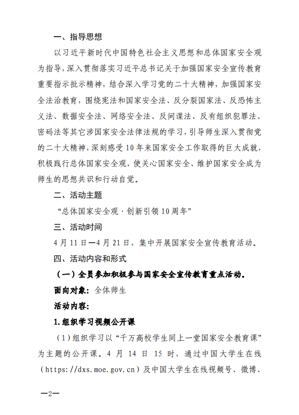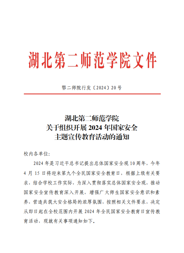 关于组织开展2024年国家安全主题宣传教育活动的通知