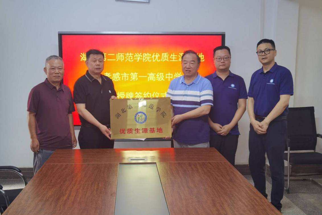 在与孝感市第一高级中学交流座谈中,校长梅建辉对我校的人才培养模式表示认可,表达了对人才的强烈需求,希望进一步加强合作。学校教务处副主任丁祖闯、人力资源中心主任易洪锋、网络中心主任徐军林、特级教师郑少峰等参加座谈,着重介绍了对人才的需求情况以及应届毕业生来校实习的岗位任务。会后举行 “优秀生源基地”挂牌仪式。