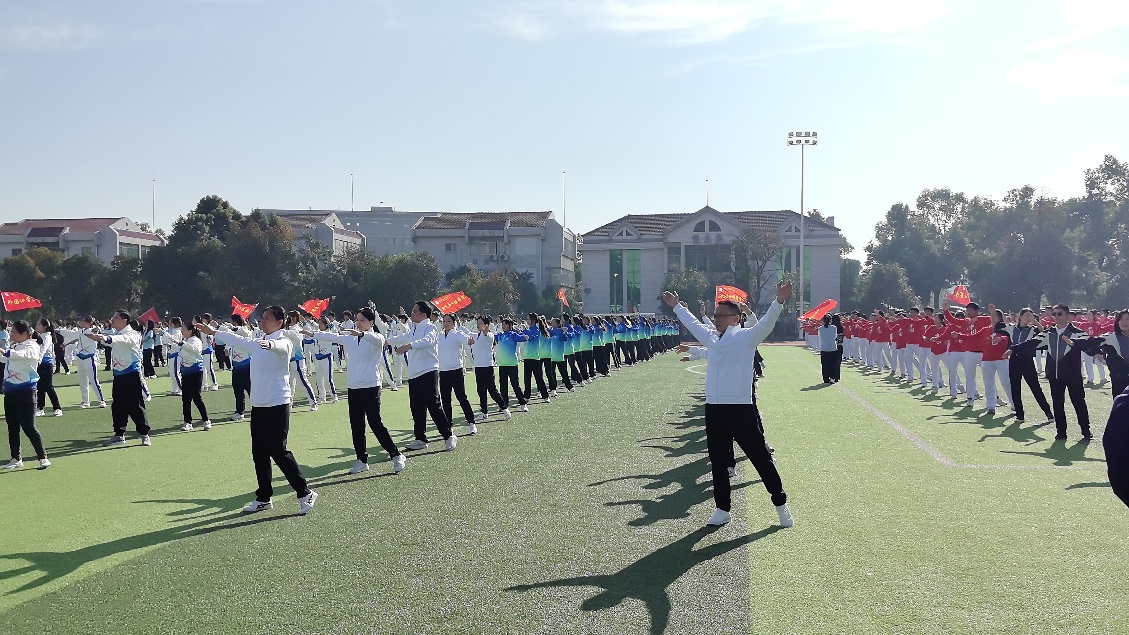 在运动会开幕式这一庄严时刻,我院师生队伍身着亮绿蓝色队服,整齐划一地行进于主席台前。他们的步伐铿锵有力,口号声震云霄,彰显出化生学子的昂扬斗志。在主席台前,他们以一场精妙绝伦的舞蹈表演,将青春的活力与激情挥洒得淋漓尽致,赢得了在场师生的热烈掌声。
