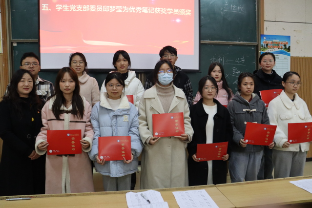 结业仪式环节,首先由张灏汇报培训班工作总结,对此次党校培训班开班以来的党日活动学习及活动开展进行了总结。高丽娥宣读表彰文件,对党校优秀学员进行表彰。随后,由张灏、邱梦莹分别为优秀学员、优秀笔记获奖学员颁奖。此外,优秀学员代表田甜、符隽上台讲述了自己通过此次党校培训班的学习所得的收获。